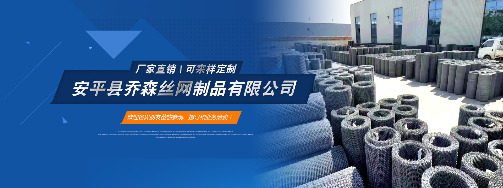 安平縣喬森絲網制品有限公司主營產品:篩網、金屬裝飾網、沖孔網板、防滑板和軋花網。常年現貨供應45號黑鋼絲編織篩網、熱鍍鋅鋼絲篩網、304不銹鋼篩網和冷鍍鋅鐵絲網,加工定做耐磨65號錳鋼絲篩網、菱形孔防堵篩網、養殖用長方孔鐵絲網、金屬裝飾網、盤條